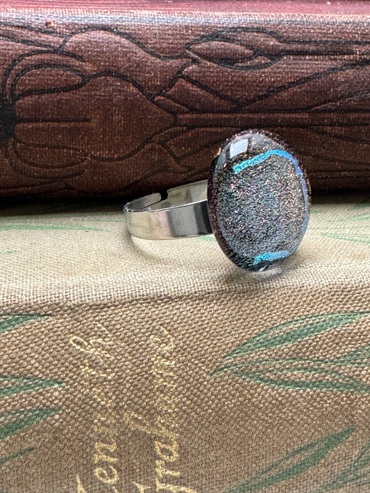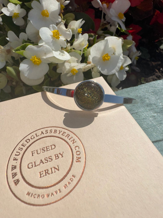 Heavy silver plated bangle with handmade 8mm glass cabochon (crackle finish)