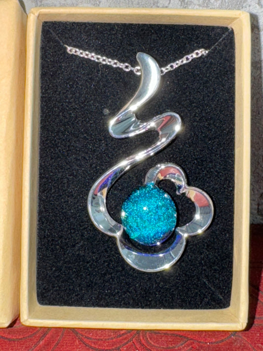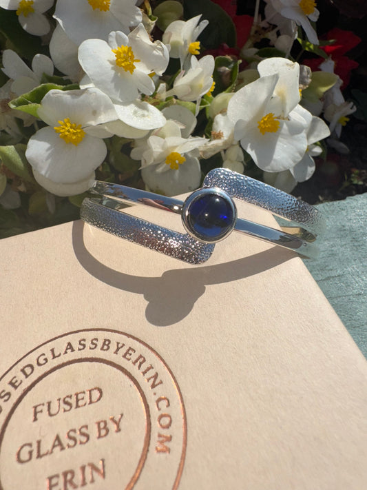 Heavy silver plated bangle with handmade 15mm glass cabochon